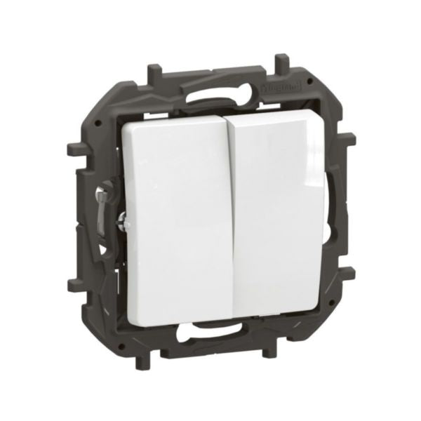 Interrupteur double 2 postes blanc - Niloé - Montage encastré - IP20