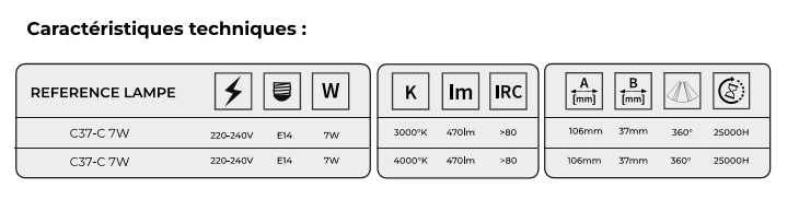 LAMPE FLAMME LED CLAIRE C37-C 7W