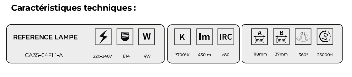 LAMPE FLAMME LED CLAIRE CA35-04FL1-A. SAVYALIGHT