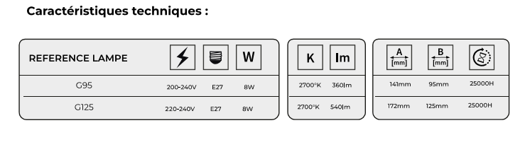 LAMPE LED CLAIRE G95/G125 GLOBE. SAVYALIGHT