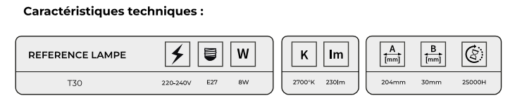 LAMPE TUBULAIRE LED CLAIRE T30. SAVYALIGHT