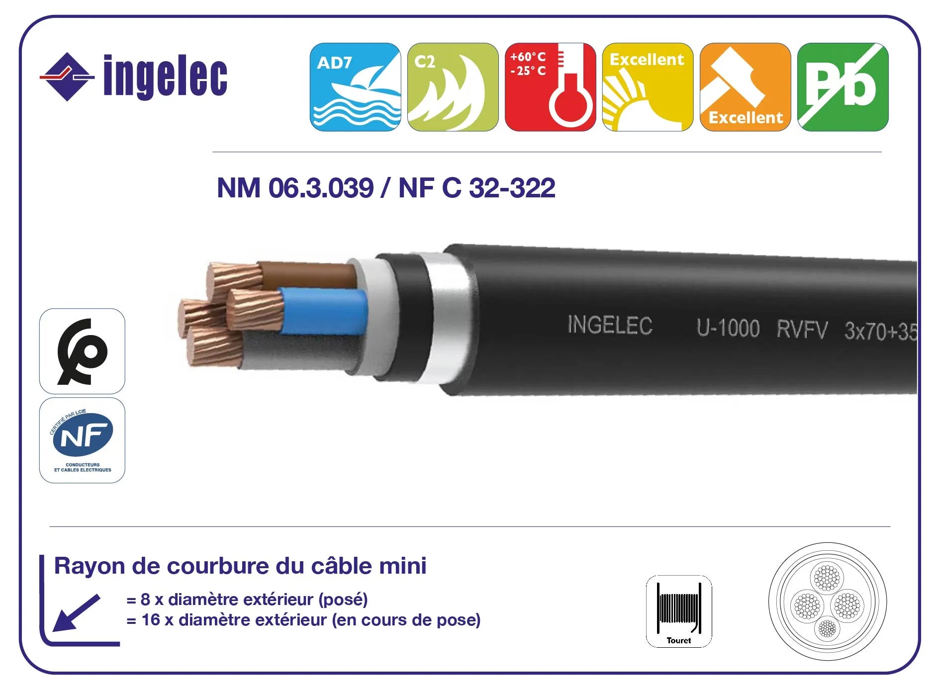 CÂBLE ARMÉ CUIVRE U-1000 RVFV VENDU AU ML