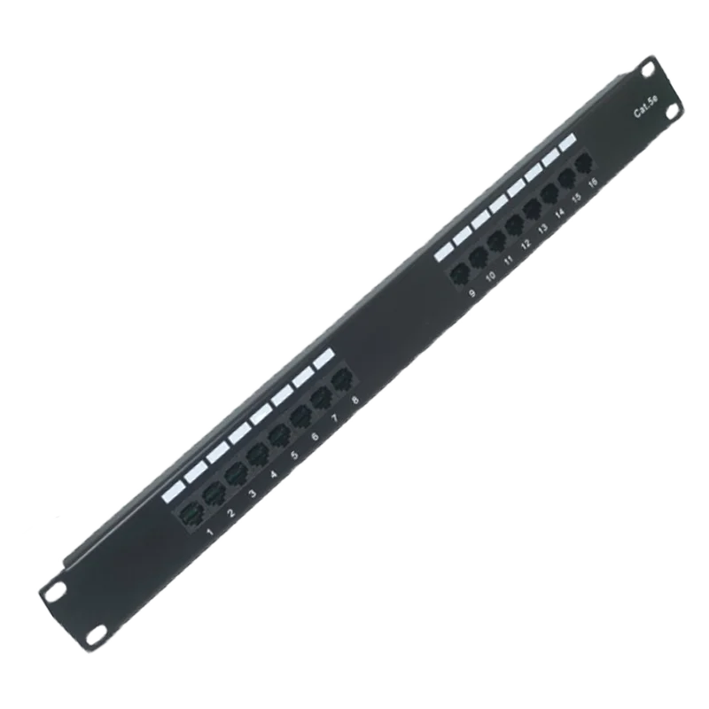 PANNEAU DE BRASSAGE WD Link de 16 ports RJ45-Femelle de Catégorie 6 (CAT 6) à installer dans les armoires. Panneau de 1 Unité en acier de couleur noire.