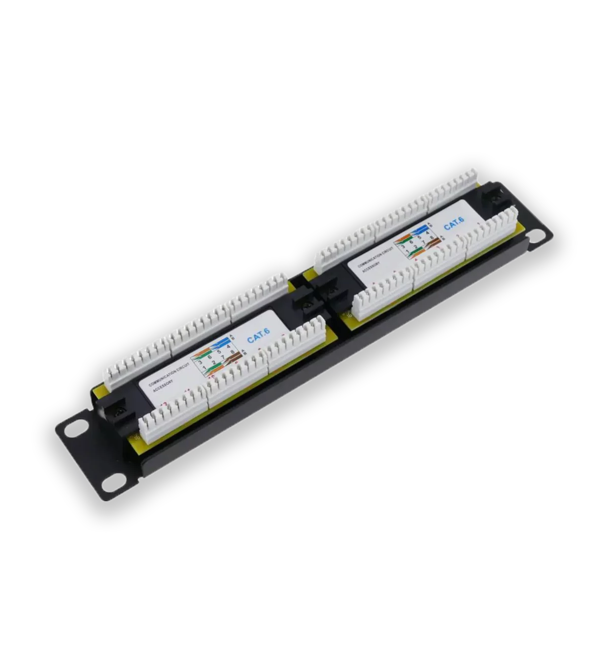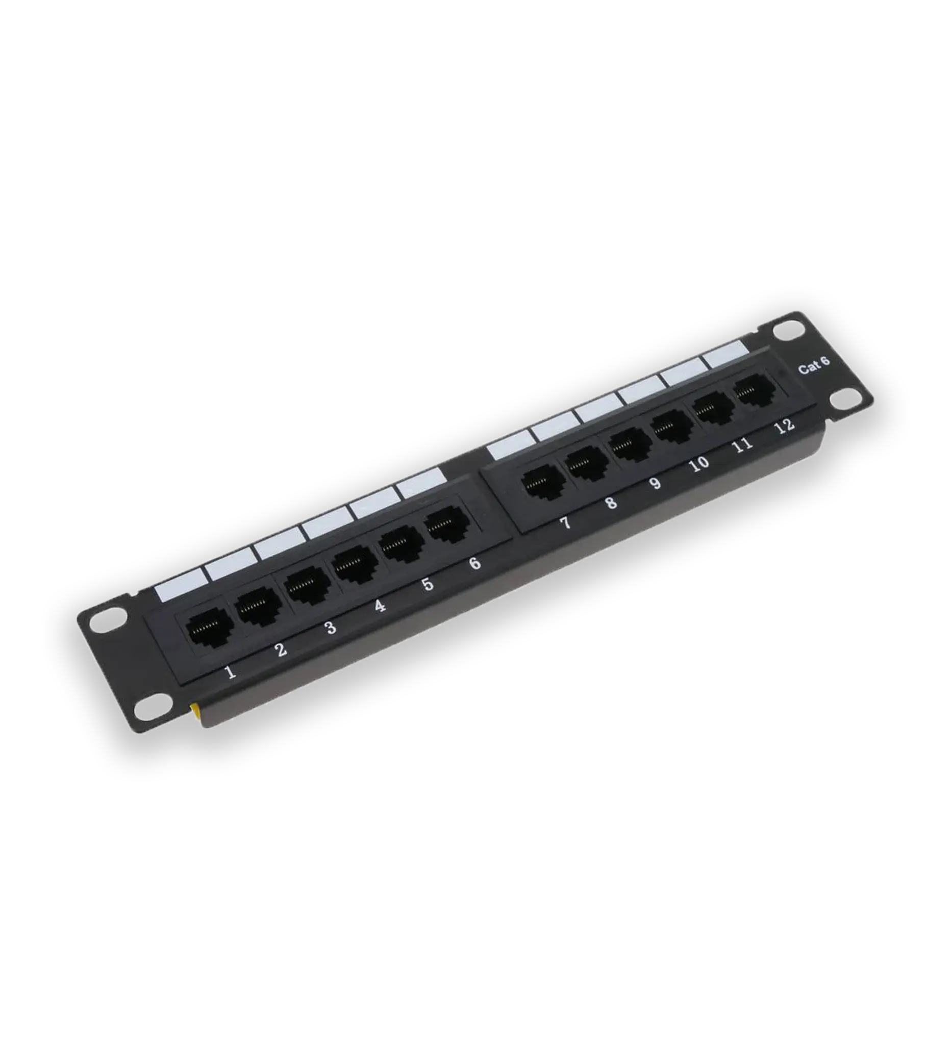 - PANNEAU DE BRASSAGE W-D-LINK de 12 ports RJ45-Femelle de Catégorie 6 (CAT 6) à installer dans les armoires. Panneau de 1 Unité en acier de couleur noire.