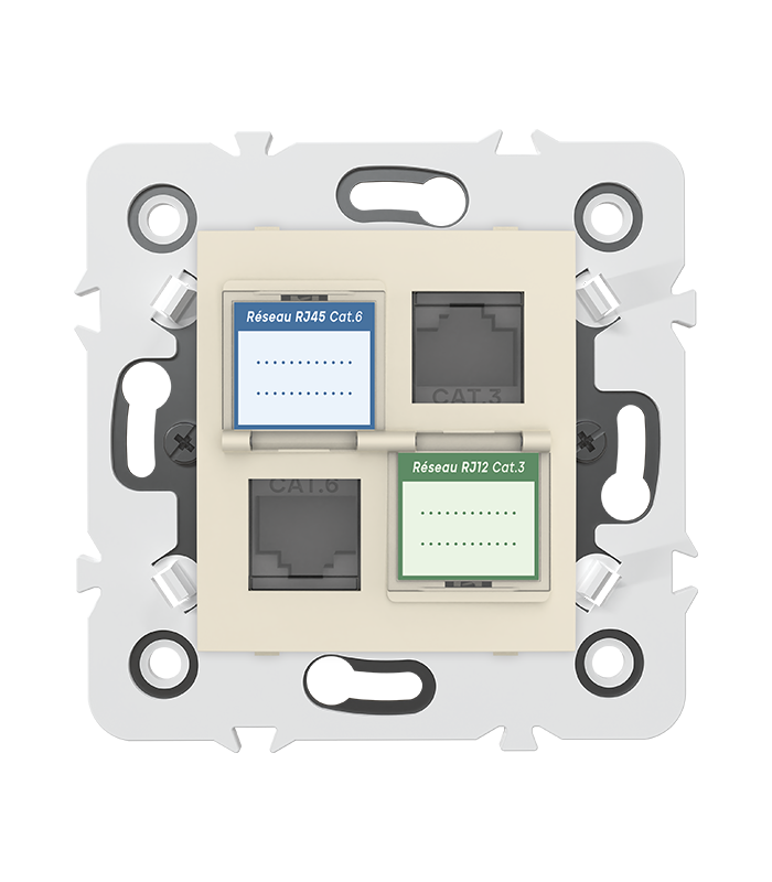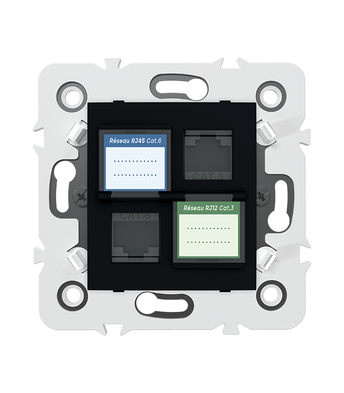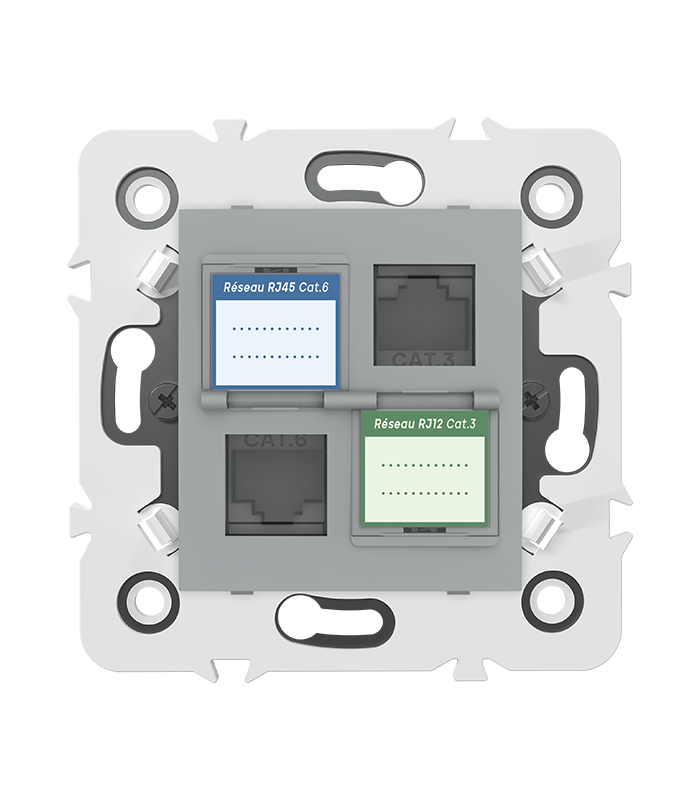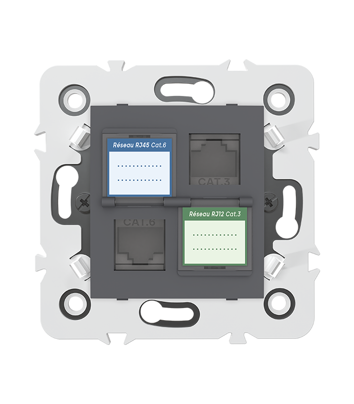 Prise mixte RJ45 CAT.6 + Prise RJ12 CAT.3 + obturateurs