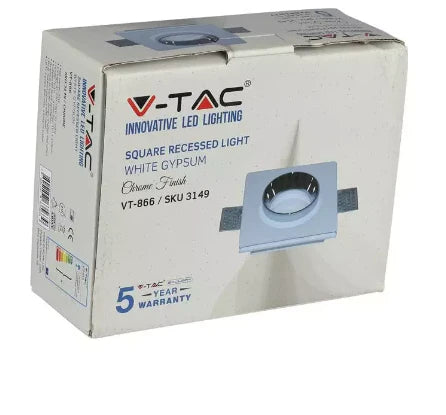 SPOT CARRE EN PLATRE ENCASTRE GU10 BLANC + NOIR METAL . V-TAC